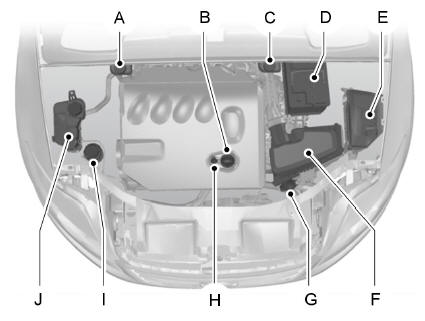 J - Depósito del refrigerante del motor. Véase Comprobación del refrigerante del