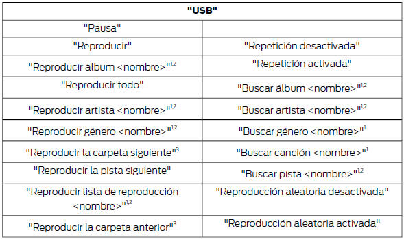 Pulse el botón de voz y, cuando el sistema se lo pida, diga "USB" y a continuación una de las siguientes opciones: