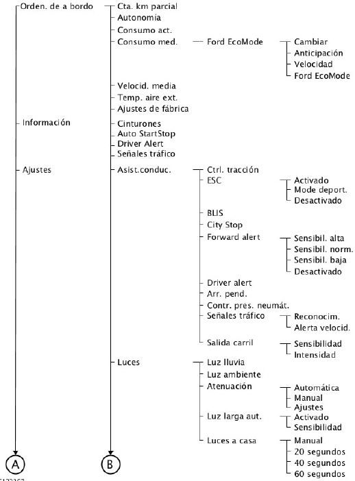 Ford Focus / Ford Focus Manual del Propietario / Pantallas informativas / Información general / Estructura de menús - pantalla informativa