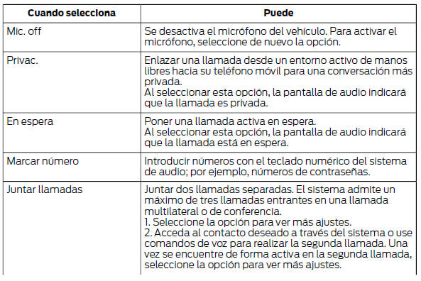 Durante una llamada activa, dispone de un menú de funciones adicionales tales como poner una llamada en espera, unirse a llamadas, etc.