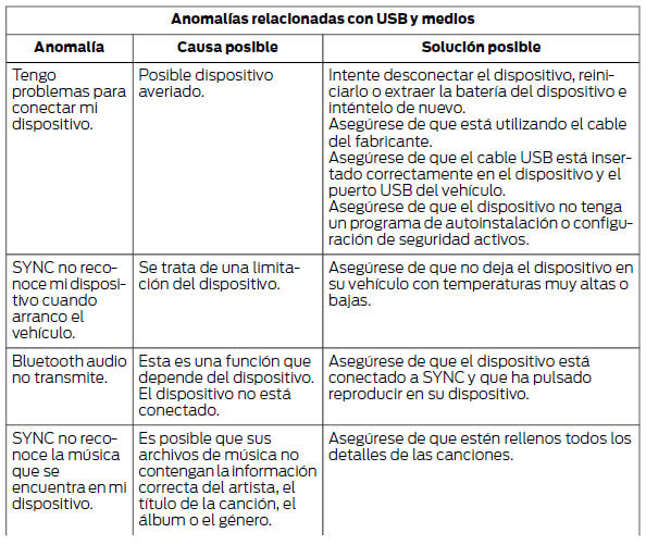 Localización de averías de SYNC™